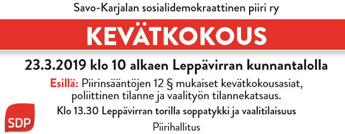 Tutustu piirihallitusehdokkaisiin kaudelle 2020-2021, heidän tiedot löydät osoitteesta: https://savokarjala.sdp.fi/piirikokous/